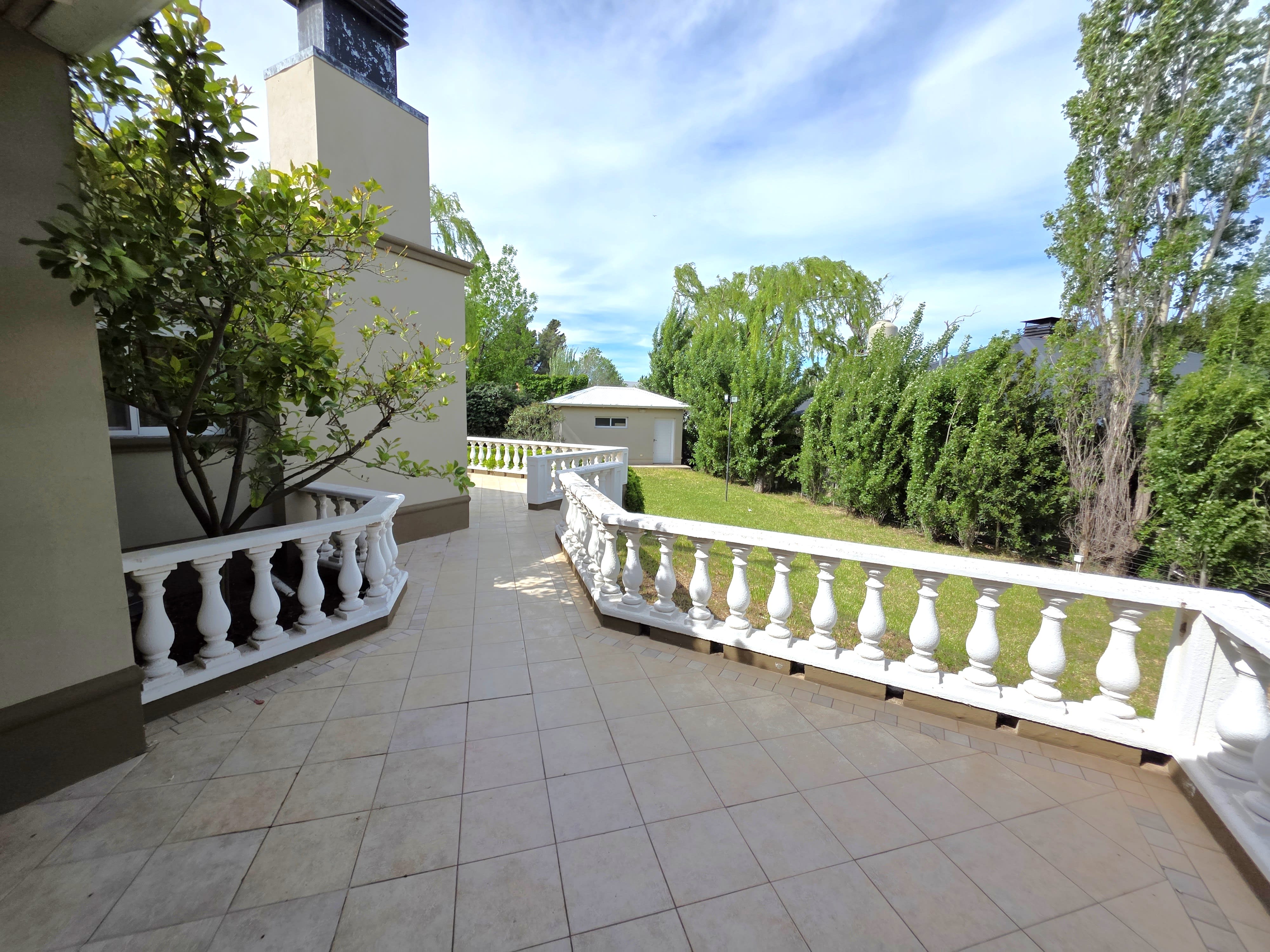 • Balcones: Existen terrazas/balcónes elevado con balaustrada de estilo clásico que da al jardín. Esto ofrece un espacio al aire libre adicional y una vista privilegiada del lote.