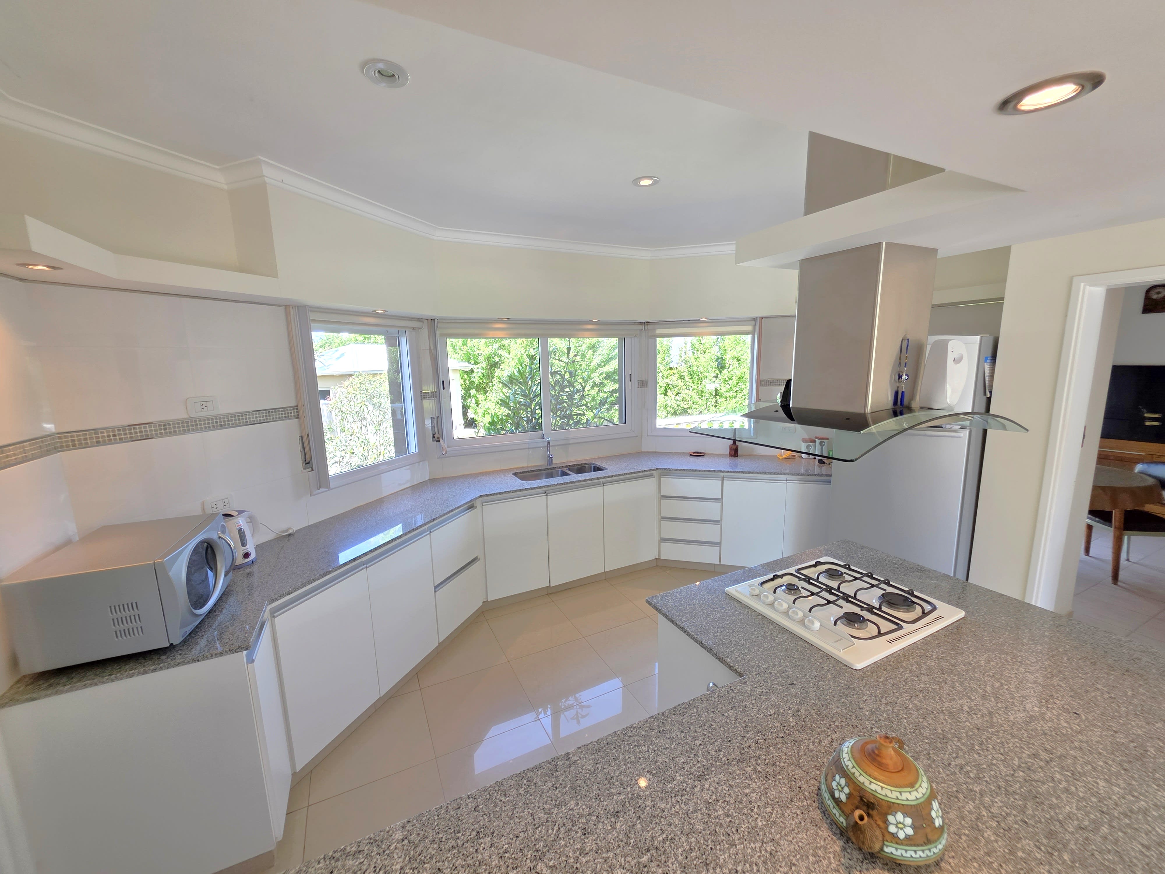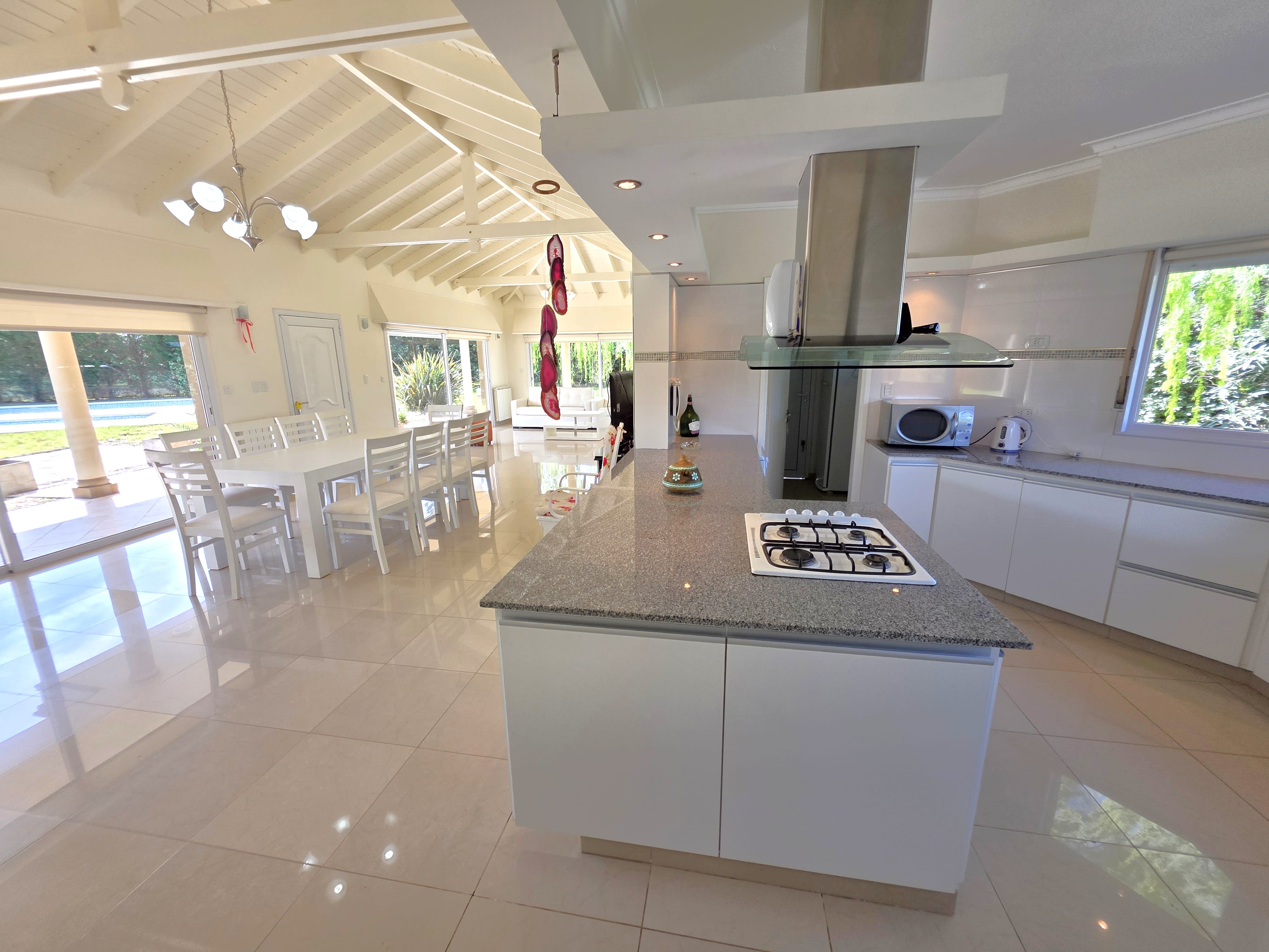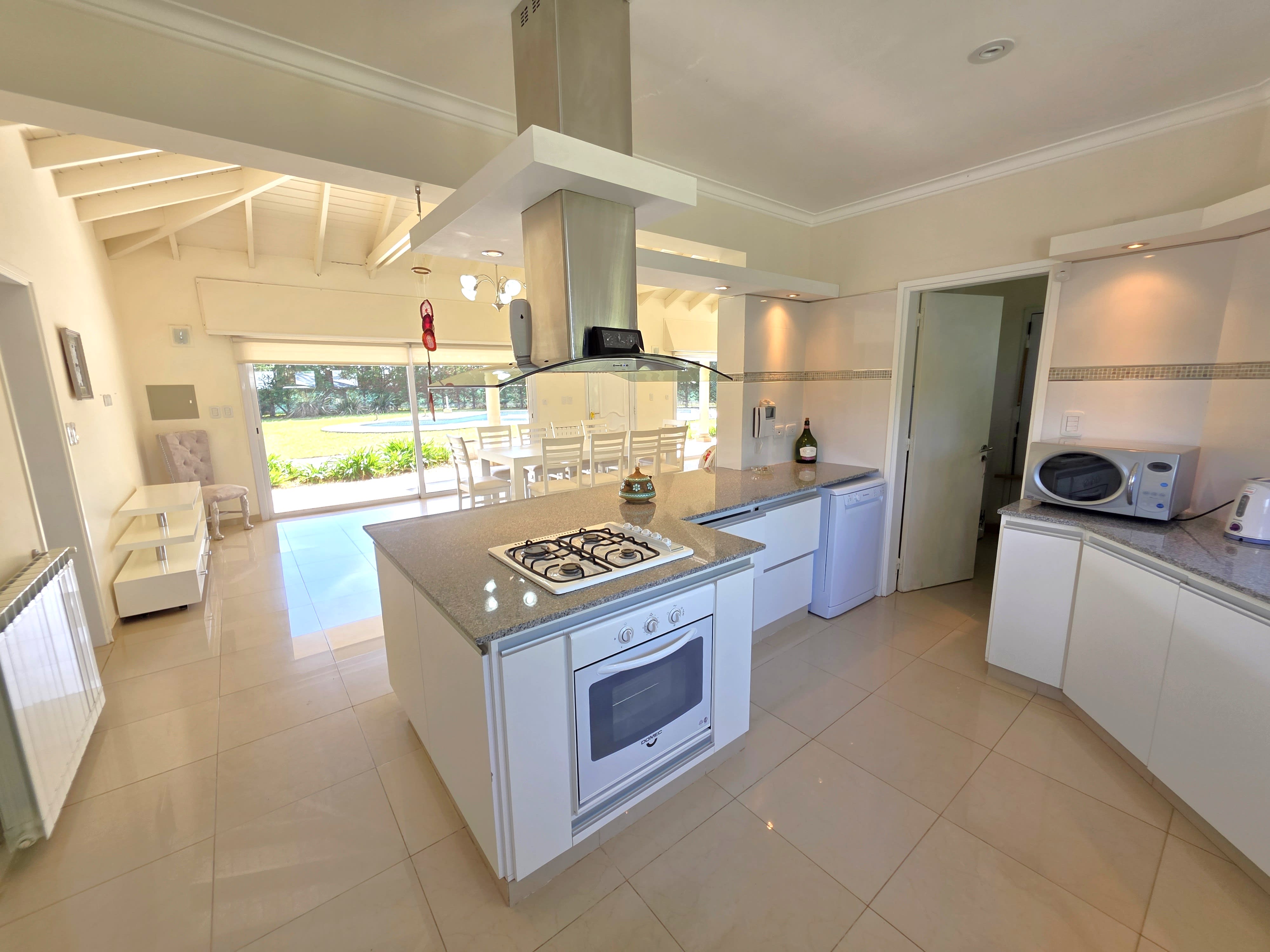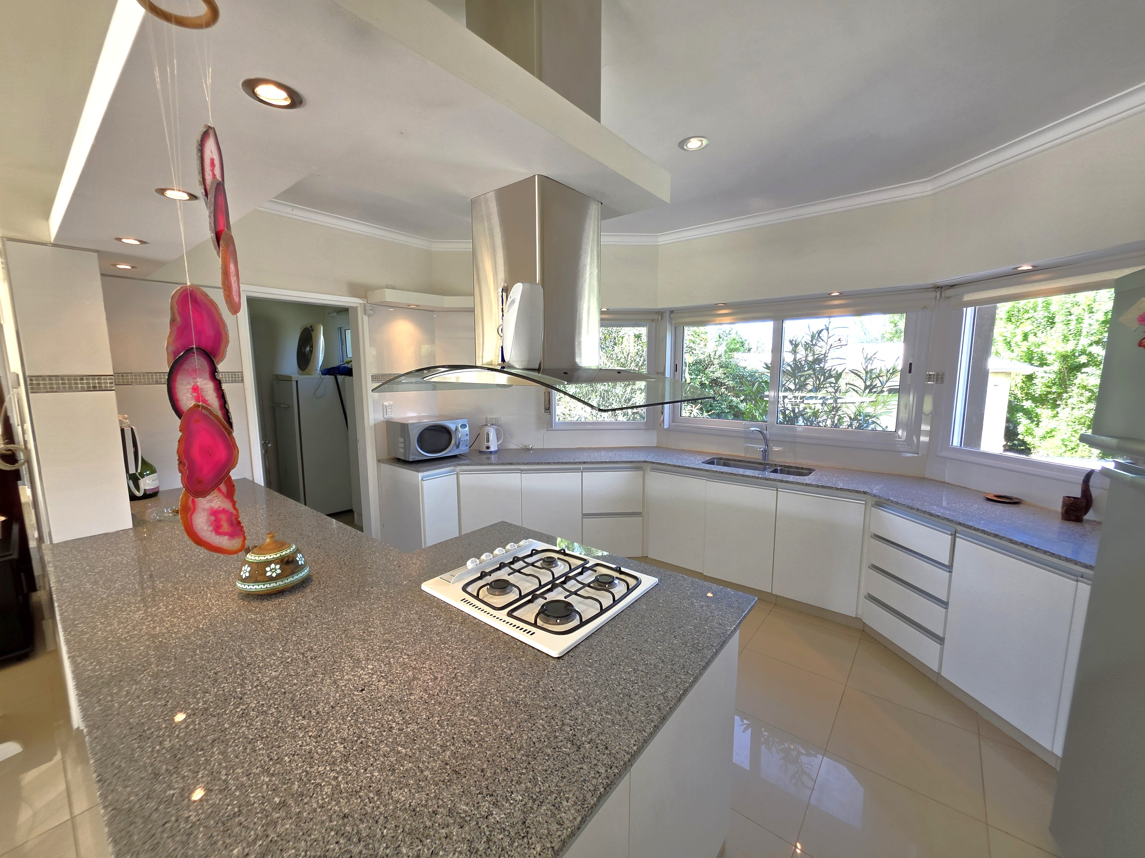 • Doble Cocina: Cocina principal moderna semi-integrada, amoblada, con amplia mesada, más una despensa separada para caldera, heladera y freezer. El sector principal de cocina con una gran barra/mesada con anafe y campana de primera calidad.